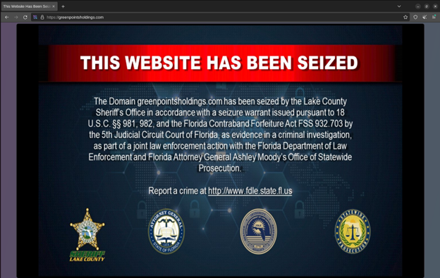 - Attorney General Moody’s CFEU shut down a fraudulent crypto-trading website that mimicked legitimate sites. The website falsely showed substantial financial gains for victims, convincing victims to deposit more money that ended up going directly to scammers’ bank accounts.