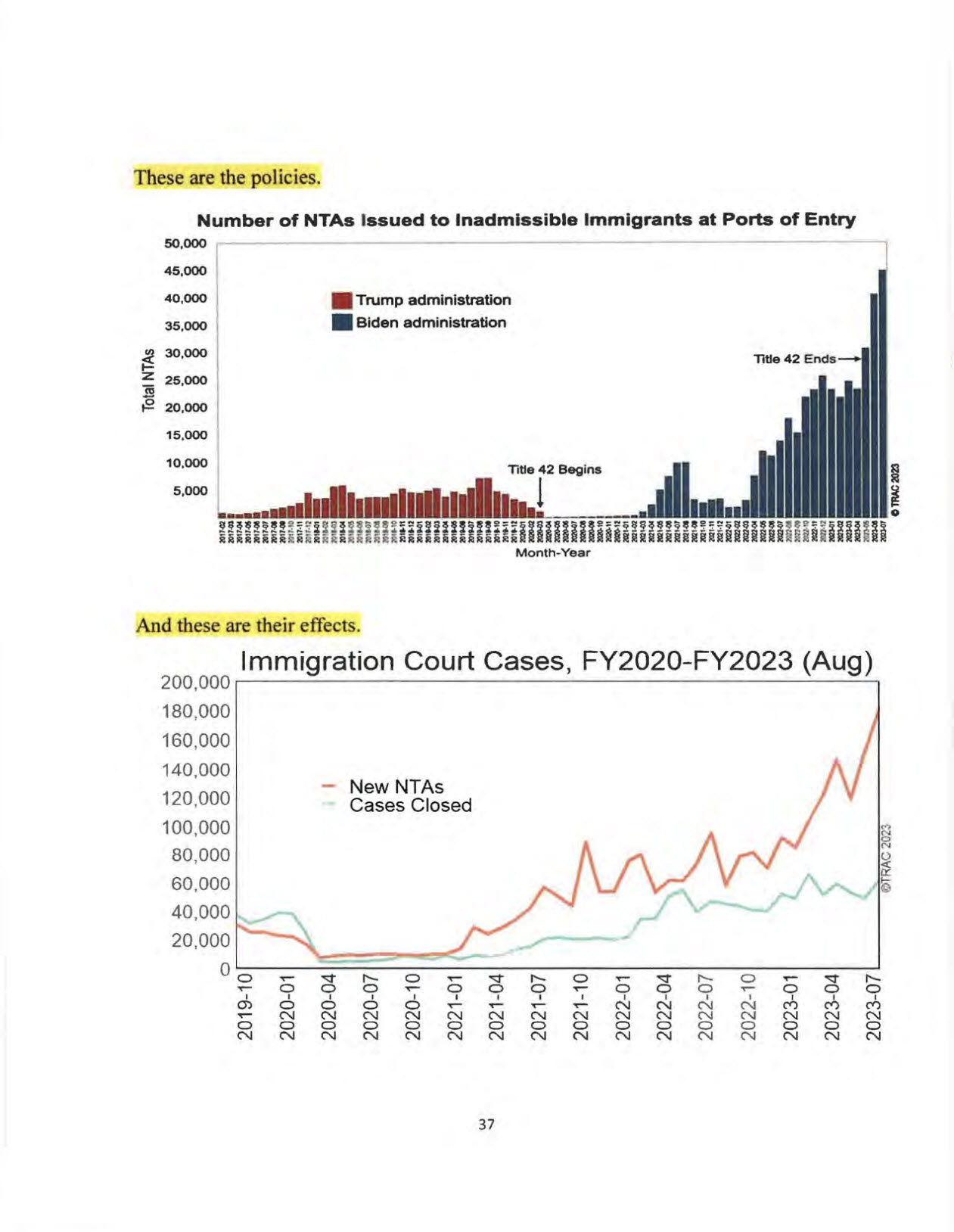 In addition to an increasing flow of inadmissible immigrants to the border, smaller numbers of aliens are being deported. According to the presentment, CBP removed or deported only 300,000 inadmissible migrants from May to September of this year. Immigration courts resolved 669,011 cases while receiving more than 1.4 million new cases—there are currently 2 million active cases. The graph below illustrates this.
