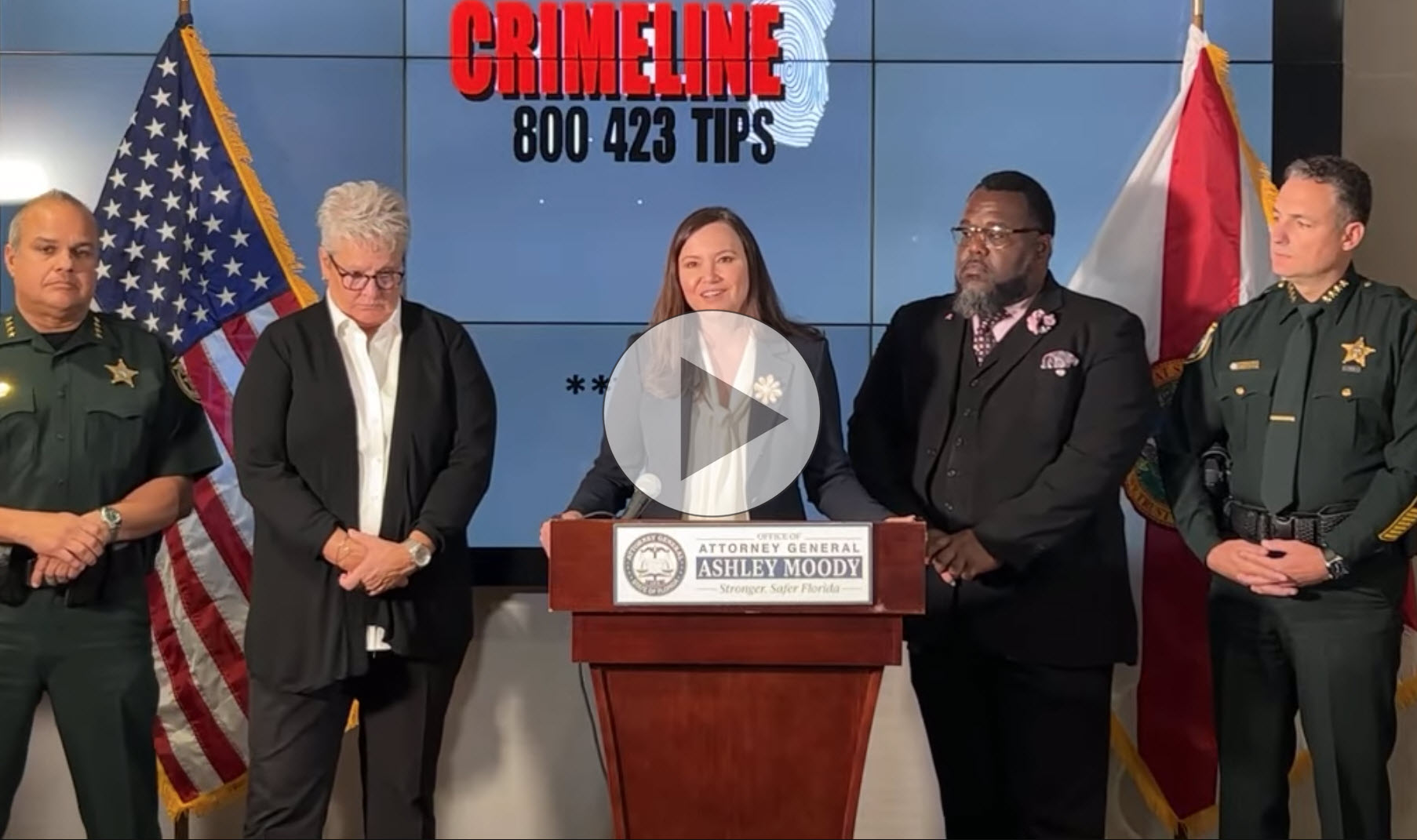 VIDEO: AG Moody Recognizes 25 Years of Working with Crime Stoppers and Encourages Floridians to Help Solve Cases