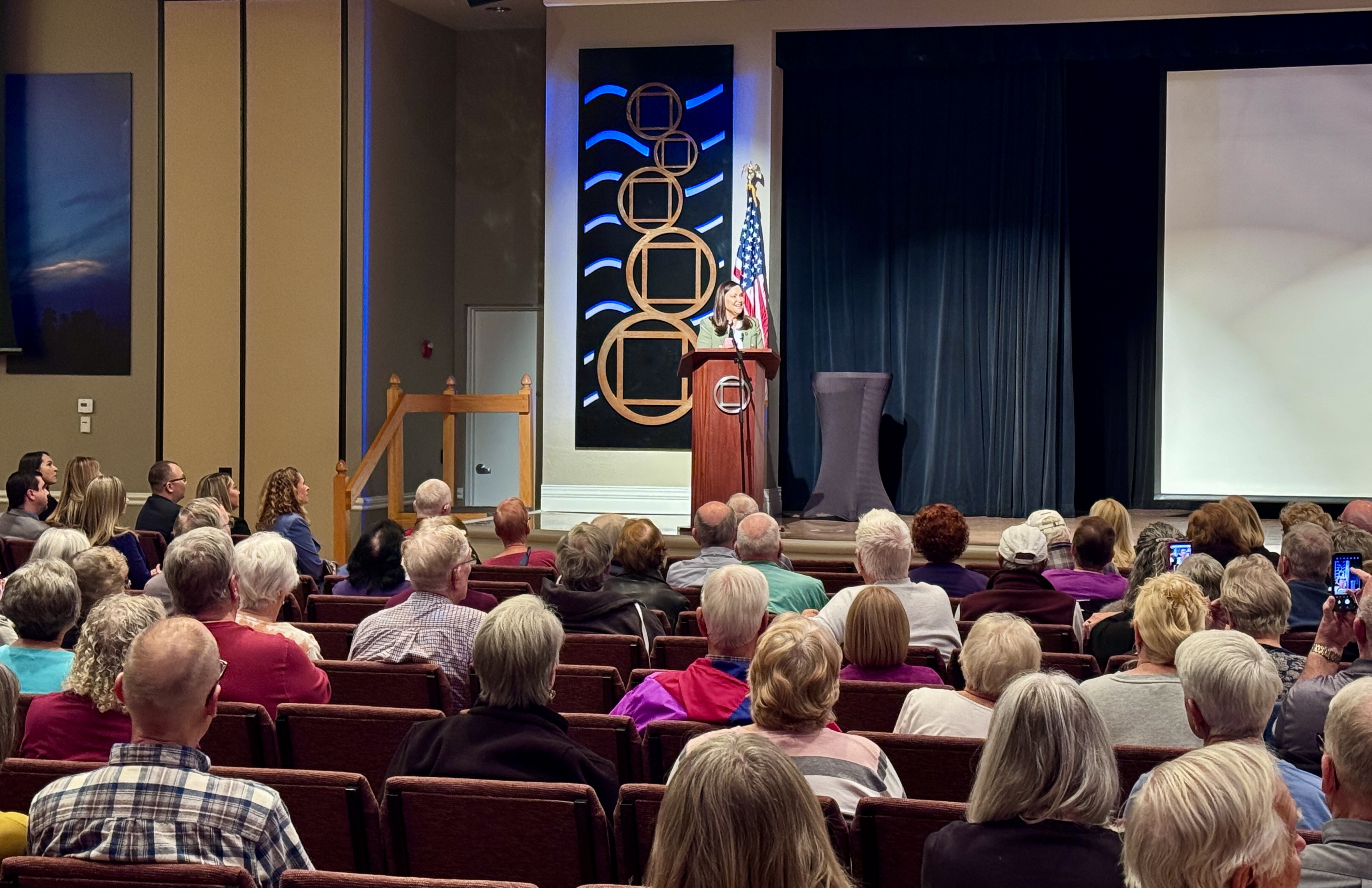 Attorney General Moody speaking to hundreds of older Floridians in Ocala at a Senior Scam Seminar on how to spot and avoid common scams.